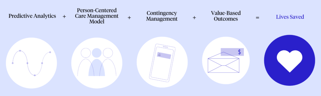 Upon identification of the high-risk individuals, the program places fully funded Certified Peer Recovery Advocates (CPRA) and trained clinicians with substance use disorder treatment partners to deliver peer-led, person-centered services to at-risk individuals “where they are” in a safe and collaborative manner. Harm reduction and SDOH services are essential components of the program. Central to the care management model is the notion that a CPRA should lead the engagement effort. CPRAs successfully participated in addiction recovery themselves; therefore, they can utilize their recovery experience, lived experience, and professional training to boost and support engagement in treatment and commitment to recovery for those most at risk and most difficult to engage.